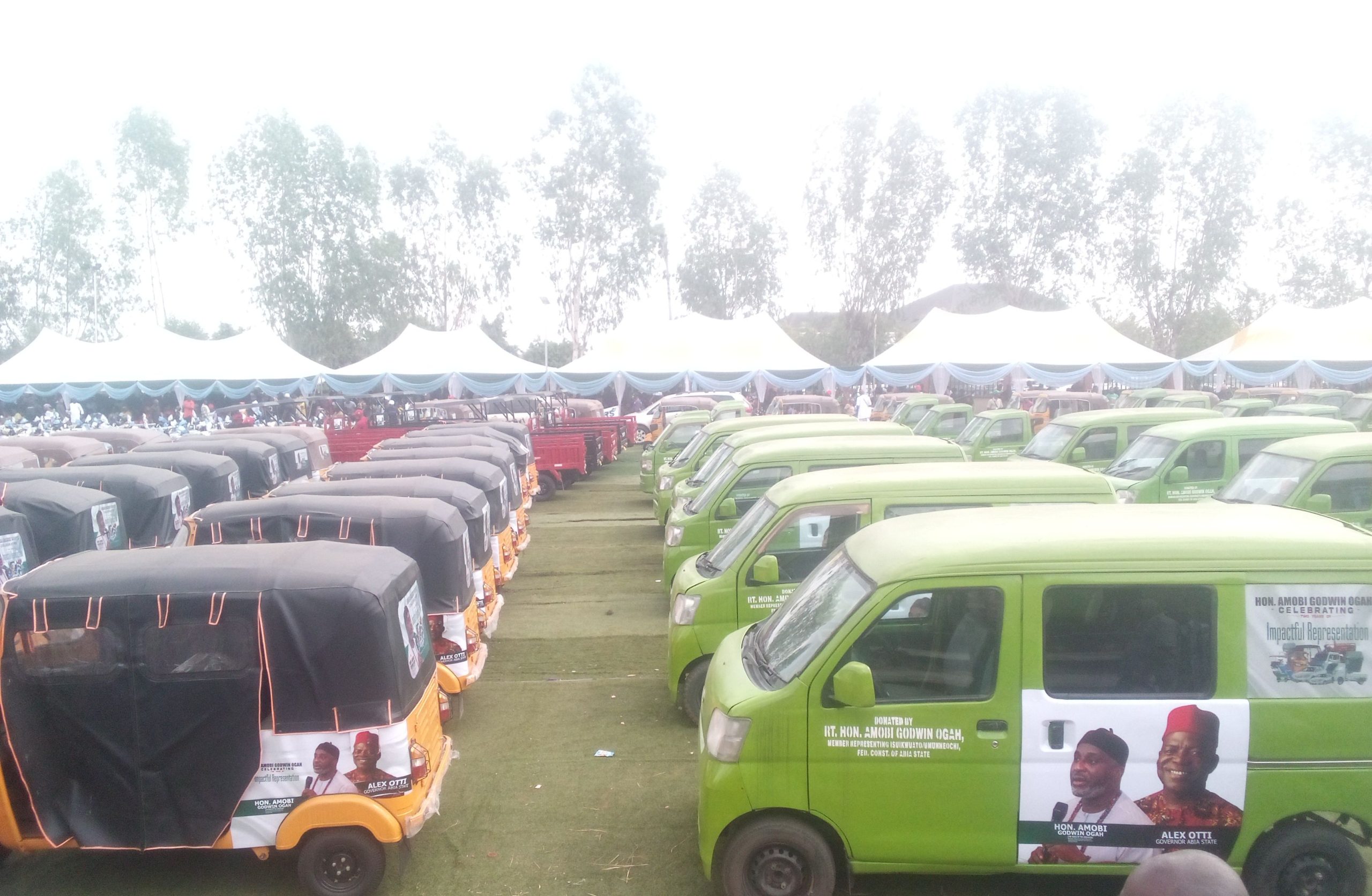 The News Agency of Nigeria (NAN) reports that Ogah distributed different items, including mini-buses, cars, tractors, tricycles, grinding machines, and sewing machines, among others, to his constituents.
